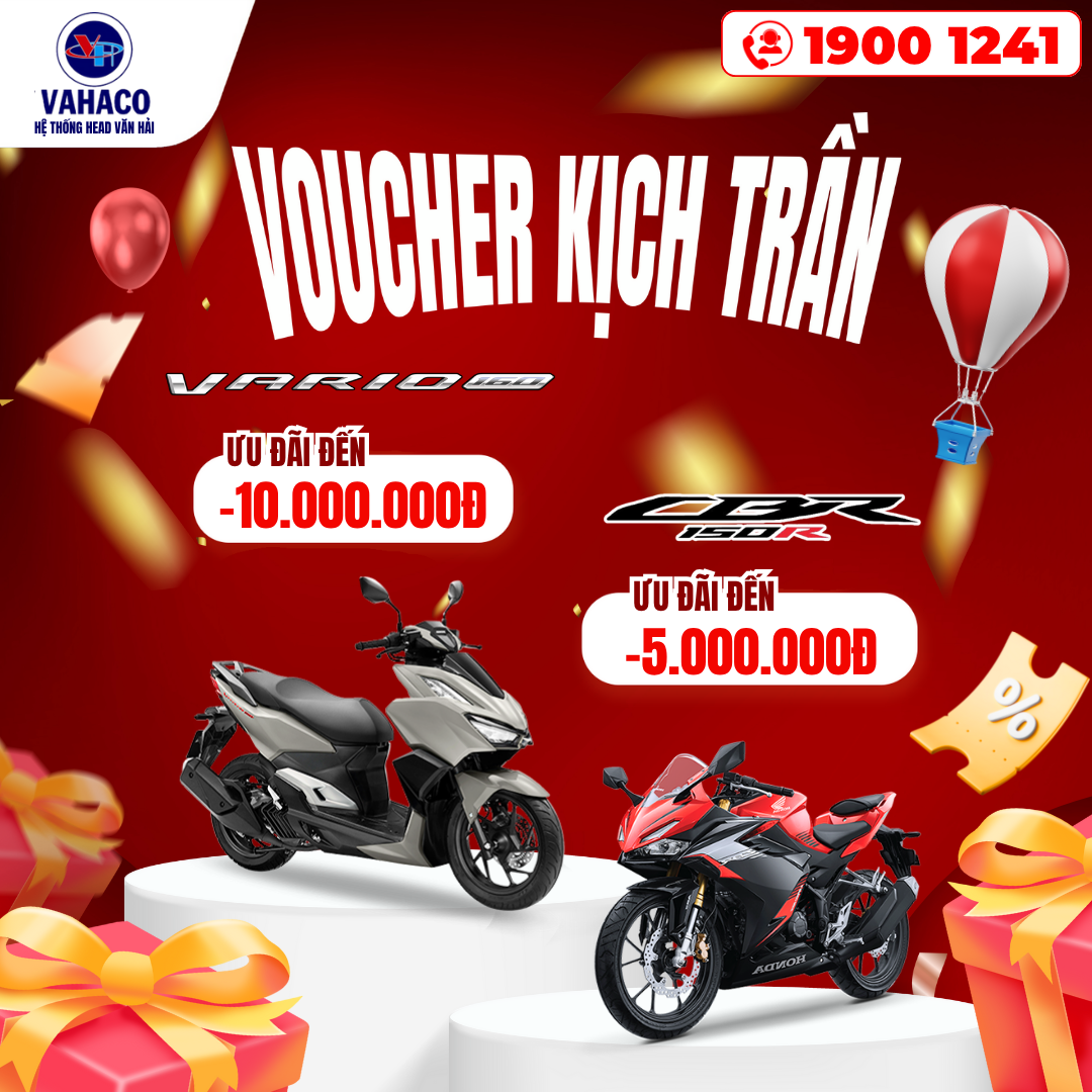- Nhận ngay Voucher 10 TRIỆU ĐỒNG khi mua Vario 160, Voucher 5 TRIỆU ĐỒNG khi mua CBR150R